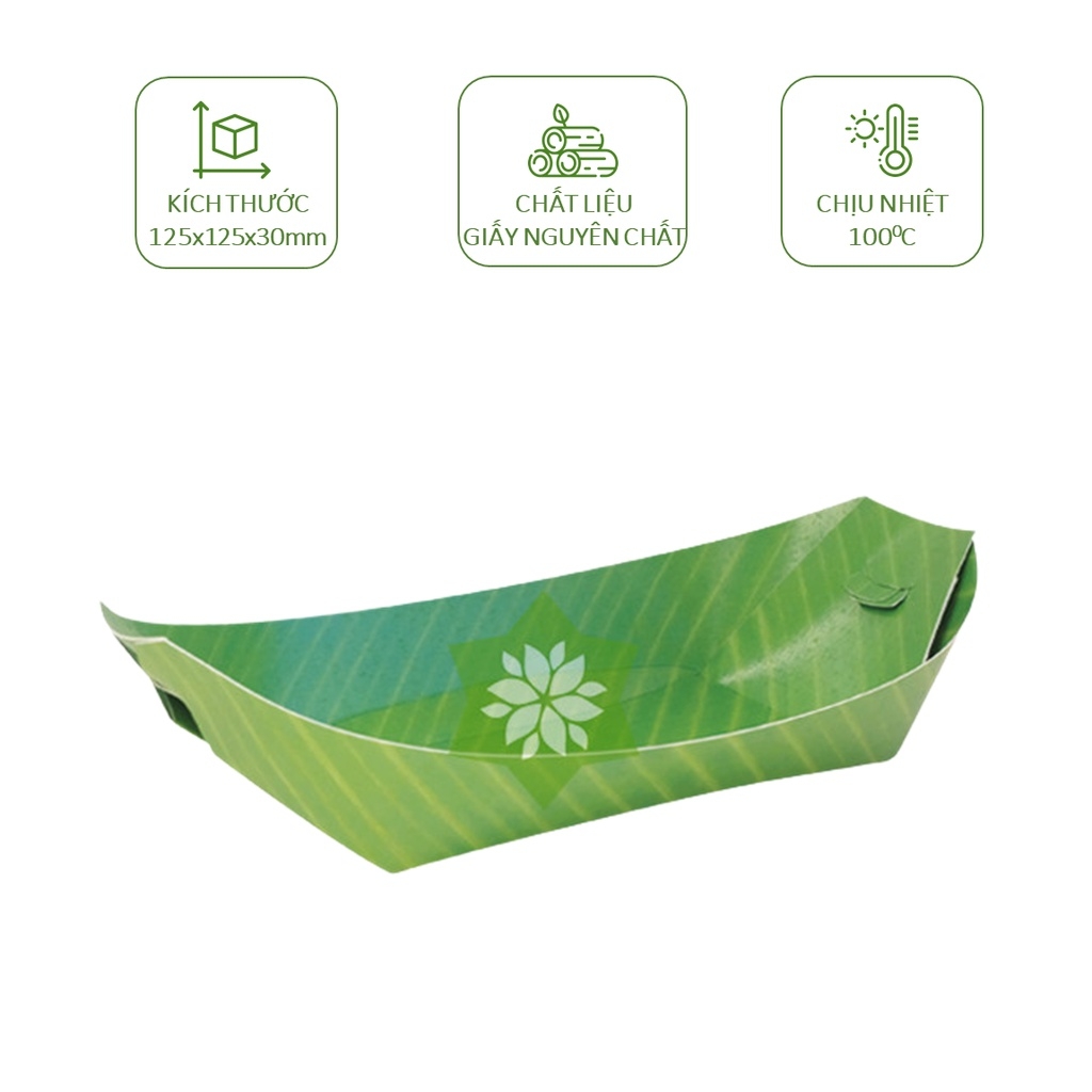 KHAY DĨA GIẤY FEST CHOICE HÌNH LÁ CHUỐI THÁI LAN 🎫 Thông số kỹ thuật ▪️ Chất liệu: Giấy nguyên chất 100% chuyên dùng trong thực phẩm, hoàn toàn không sử dụng nguyên liệu tái chế ▪️ Kích thước: 125x125x30mm ▪️ Sử dụng tốt với thức ăn nóng 100 độ C mà không bị thấm, biến dạng, phù hợp với nhiều loại thức ăn ✔️Chất lượng sản phẩm ▪️ Thiết kế nhẹ gọn, dễ gấp, phù hợp cho các buổi tiệc tùng, dã ngoại ▪️ Khay đựng đồ ăn bằng giấy cao cấp, hợp vệ sinh và thân thiện tuyệt đối với môi trường. ▪️ Khay giấy Fest Choice của Biogreen có thiết kế, chất lượng, độ bền lẫn khả năng ứng dụng vượt trội hơn rất nhiều so với các loại khay giấy Kraft thông thường. ▪️ Có thể tái chế và cực kỳ thân thiện với môi trường 📝 Công dụng sản phẩm ▪️ Sử dụng với các thức ăn như cơm trưa văn phòng, bún, mỳ xào, spaghetti, pizza, khoai tây chiên, gà rán, các loại đồ ăn nhanh, ăn vặt, party, gà nướng, heo quay,... ▪️ Thiết kế đẹp, tiện lợi, phù hợp với các nhà hàng, khách sạn, quán ăn, giao thức ăn nhanh, cơm văn phòng, tiệc tại gia, picnic… ▪️ Khay giấy Biogreen phân hủy tự nhiên trong tự nhiên, không chứa yếu tố độc hại, đảm bảo sức khỏe người dùng và bảo vệ môi trường. #khaygiấy #khayláchuối #đồdùng1lần #khayđựngthứcăn #khaygiấythứcăn #đĩagiấy #đĩadùng1lần #đĩaănnhanh #đĩatiệnlợi #đồdùnggiađình #đĩagiấytiệnlợi #đĩagiấycaocấp #đĩagiấygiárẻ #dĩagiấy #dĩadùng1lần #đĩabánhkem #dĩasinhnhật #đĩa15cm #đĩa18cm #đĩa20cm #đĩadãngoại