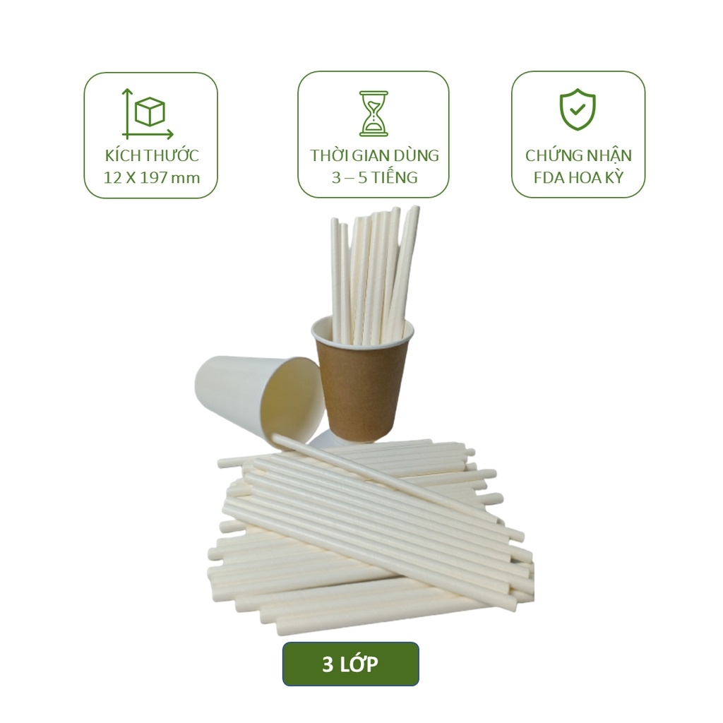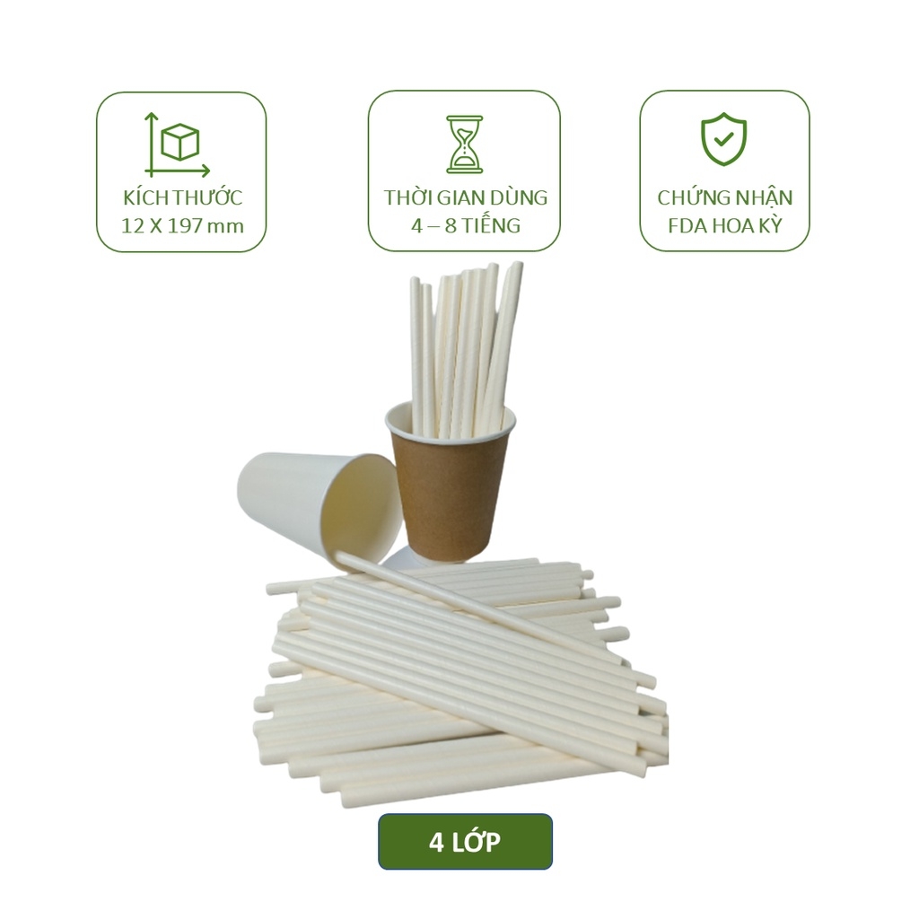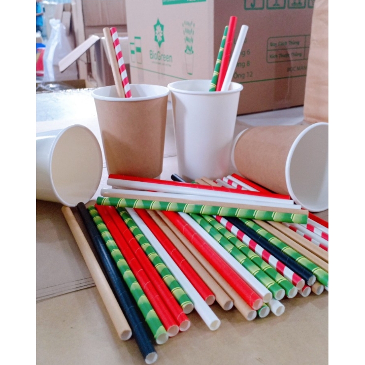 100 ống hút giấy phi 8 uống sinh tố, trân châu nhỏ, thạch cafe, cafe đá xay,...