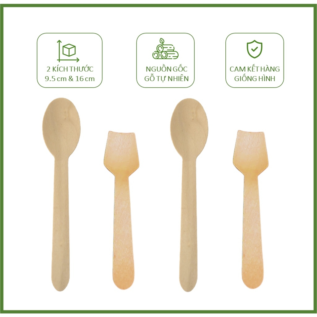 100 Thìa muỗng gỗ dùng 1 lần ăn kem, cafe, salad,...