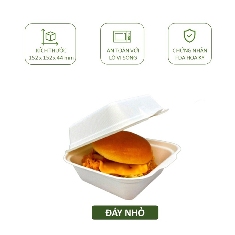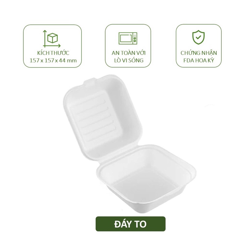 Giới thiệu hộp bã mía một ngăn đựng thức ăn 600ml: Biogreen cung cấp hộp đựng thức ăn bằng bã mía 1 ngăn https://cf.shopee.vn/file/vn-11134208-7r98o-lnmbkawms5wtb4 + Được làm từ 100% từ bã mía nên có khả năng phân hủy trong môi trường tự nhiên. + Có thể dùng trong microwave lò vi sóng. Kích thước: 183x137x45 https://cf.shopee.vn/file/vn-11134208-7r98o-lxuwea0793vd3e CÔNG DỤNG của hộp cơm bã mía 1 ngăn: – Hộp bã mía 1 ngăn dùng để đựng cơm, phở, bún, bánh mì, thực phẩm, thức ăn nhiệt độ nóng lạnh – Tạo ấn tượng thân thiện với môi trường, hưởng ứng phong trào bảo vệ môi trường đang rất hot trong giới trẻ hiện nay – Thiết kế tiện lợi, màu sắc vừa gần gũi thân thiện vừa sang trọng tinh tế, tạo hình ảnh chuyên nghiệp và tiên tiến cho nhà hàng, quán cafe của bạn. https://cf.shopee.vn/file/vn-11134208-7r98o-lnmbkawmtkh988 Không gây ung thư: có thể trực tiếp sử dụng trong lò vi sóng Bảo vệ môi trường: hộp cơm bã mía có khả năng phân hủy nhanh từ 40-60 ngày. Chống nước và chống dầu: Không bị rò rỉ với nhiệt độ nước 100˚C và dầu 120˚C. Bền, kháng dầu mỡ. Là sản phẩm lý tưởng cho các buổi hội họp ngoài trời, trường học, bệnh viện, các sự kiện thể thao. Vững chắc và cứng: Vì sản phẩm được làm từ nguyên liệu 100% bã mía ướt, các sợi bám chặt vào nhau nên sản phẩm vô cùng chắc chắn, có thể dung để đồ ăn nặng. Tiêu thụ ít điện năng, nước và năng lượng: sản phẩm phẩm bã mía sử dụng hoàn toàn tự nhiên từ cây mía đường. https://cf.shopee.vn/file/vn-11134208-7r98o-lnmbkawmuz1pa5 #Biogreen#hopbamia1ngan#giare#giasi