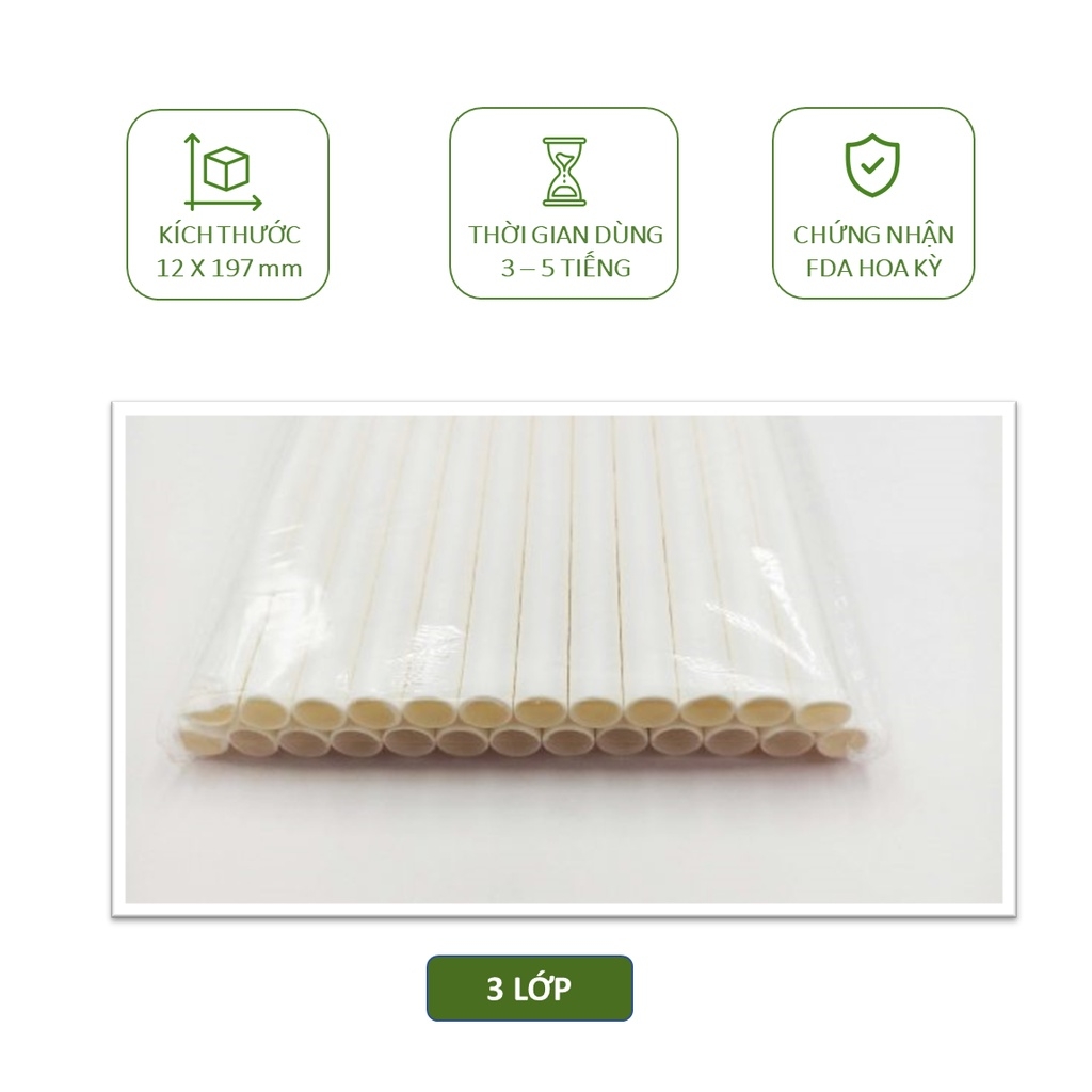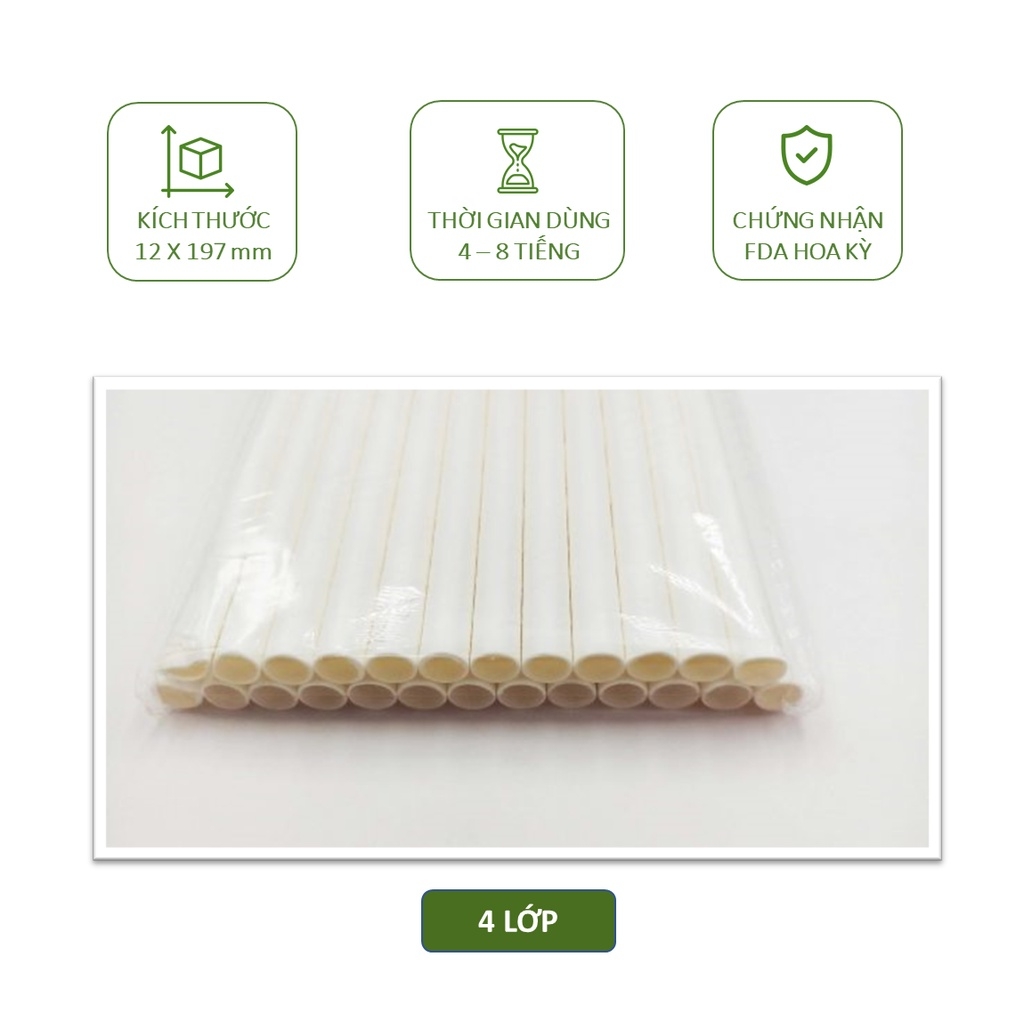 50 ống hút giấy phi 10, phi 12 uống trà sữa trân châu, sinh tố